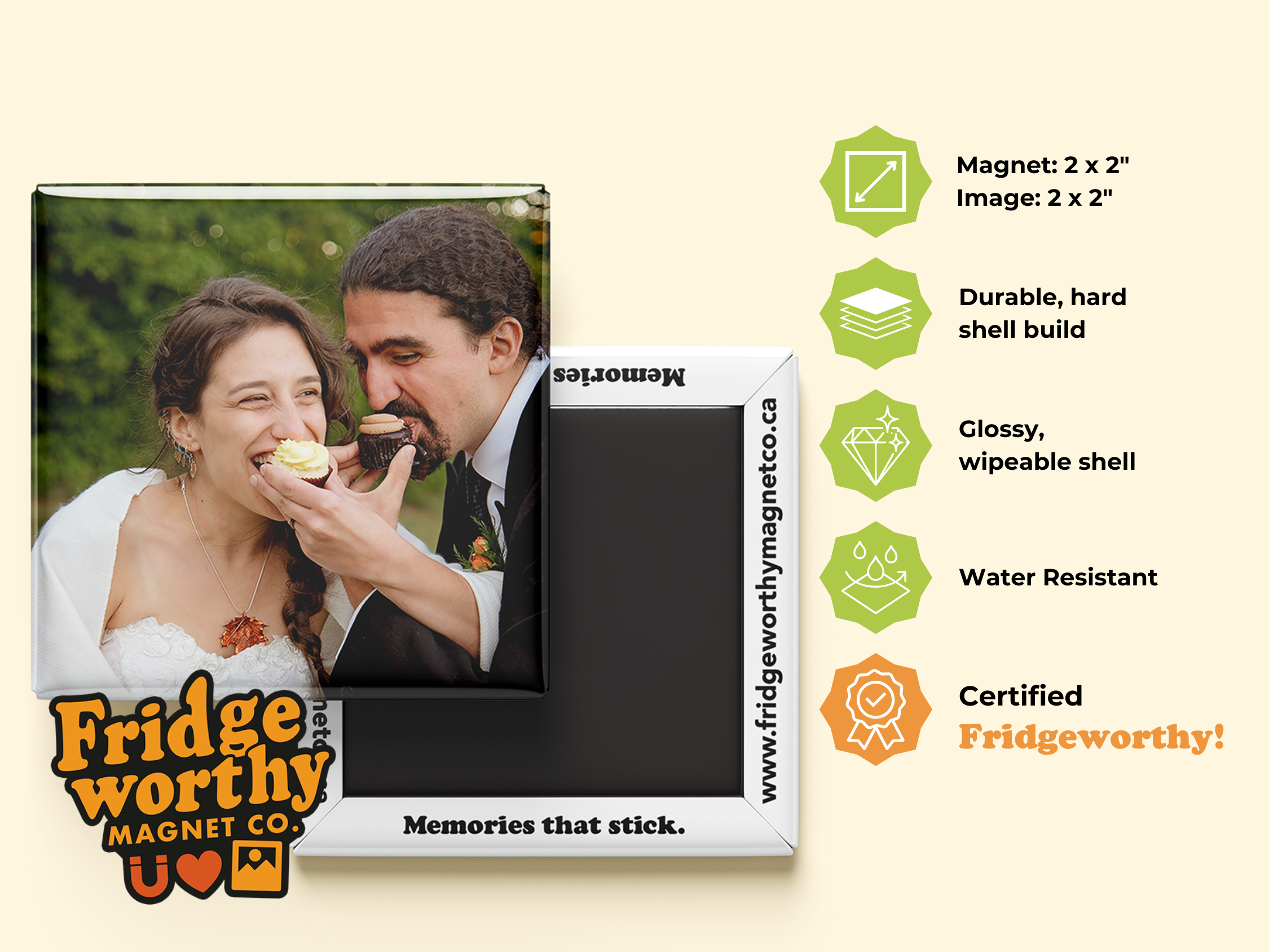 At Fridgeworthy Magnet Co., each magnet is professionally printed and pressed in Canada using durable materials designed for long-term display. Customers can upload their photos and request personalization to create a design that reflects their event or occasion.